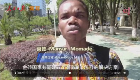 谈到如何看待金砖“大家庭”在世界舞台上展现出来金砖力量时,莫桑比克籍硕士研究生莫德坚定回答道:“金砖国家共同建立了有效的、包容的解决方案;金砖国家在促进全球经济恢复方面做出了重要贡献。”