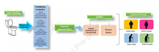 Title: Emission characteristics and quantitative health risk assessment of bioaerosols in an indoor toilet after flushing under various ventilation scenarios.