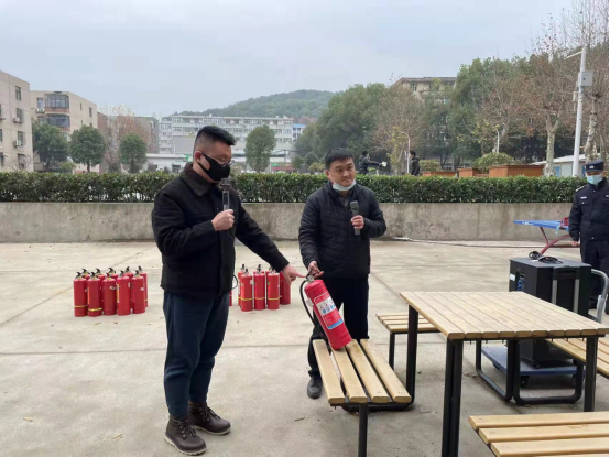 校保卫处老师杨彪(右)讲授如何正确使用灭火器