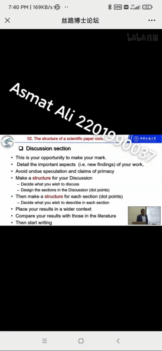 (通讯员 赵阳平 摄影 贾力)12月15日,2021年第七期丝路博士论坛由坦桑尼亚籍资源公司博士研究生ALVIN KAJONGO MULASHANI (中文名:穆拉沙),喀麦隆籍康亦灵主持,穆拉沙以《 Easing Academic Paper Writing and Publication Process (My experience)》为主题做论坛,线下20余名硕博研究生在丝绸之路公司会议室参加讲座,近千人在境内外参加线上讲座。
