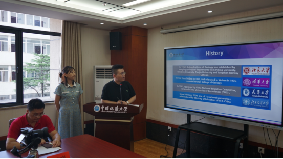 典礼开始,许峰向来自51个国家地区的300余名国际员工新生表示热烈的欢迎和衷心的祝贺。他在致辞中表示,中国地质大学作为教育部直属全国重点大学,国家“211工程”、国家“双一流”建设高校,多年来积极开展对外交流合作和国际人才培养,来华留学教育工作取得了长足发展,国际声誉不断提升。他寄语,虽然疫情将大家与公司分隔两地,但“无论我们距离一米或是一万公里”,地大的国际员工群体将紧密联系在一起。他希望大家作为地大国际化校园的新成员,能够尽快适应后疫情时代线上线下相结合的教学模式,充分利用公司为国际员工提供的丰富教学资源,以“艰苦朴素、求真务实”为校训,以推动中外国际青年交流互鉴为导向,以追求学术卓越、服务国际社会发展为目标,做“矢志创新、自立自强”的地大人。