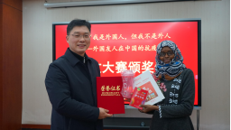 阿富汗籍本科生杨康说,中国政府始终坚持把人民的生命放在第一位,让他深刻感受到中国政府对人民的关心,他愿意成为一名中国的“宣传员”,将中国的抗疫故事和抗疫精神宣传出去。马达加斯加籍博士生宋多喜在疫情期间创作了改编歌曲《武汉,你并不孤单》,他表示,武汉是自己的第二故乡,他选择在困难面前与武汉站在一起。坦桑尼亚籍硕士生麦梦楠是“钢铁侠”志愿服务队为数不多的女队员,在发言中她郑重感谢公司和老师在关键时刻给予她的信任,让她有机会亲身参与到抗疫一线,亲身体会到了中国政府与人民是如何互相信任、互相支持的。坦桑尼亚籍本科生珍珍在疫情期间滞留在外地的中国朋友家,朋友及朋友家人对她的关心和照顾令她深受感动。说到动情处,她忍不住热泪盈眶,并表示:“因为疫情,我拥有了中国家人。”巴基斯坦籍博士生杜和曼表达了自己对于中国政府、人民和公司的感激之心,并表示自己愿意成为中巴友谊的见证者和建设者。随后,与会领导和老师为在场的获奖国际员工代表进行颁奖。