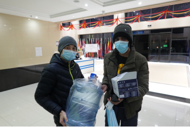 进入战“疫”阶段的武汉,几乎成了一座空城。但在公司疫情防控工作领导小组的统一部署下,公司食堂和超市坚持每日开放,为留校师生提供生活便利。由于是特殊时期,超市的货物难免有些供不应求。为了解决国际员工的“菜篮子”问题,保障他们的生活需求,beat365官网中文版本甘义群经理、许峰副经理做了一个重要决定:以公司的名义购进一批蔬菜发放给国际员工。罗金刚和罗文旭老师一起负责具体的采办工作,在他们的努力之下,2月4日,第一批胡萝卜、洋葱、土豆、西红柿、包菜等共4000多千斤蔬菜抵达,在许峰老师带领下,罗金刚和罗文旭老师及职工志愿者一起装卸物资,用了3个多小时将蔬菜发到每一位员工手中。