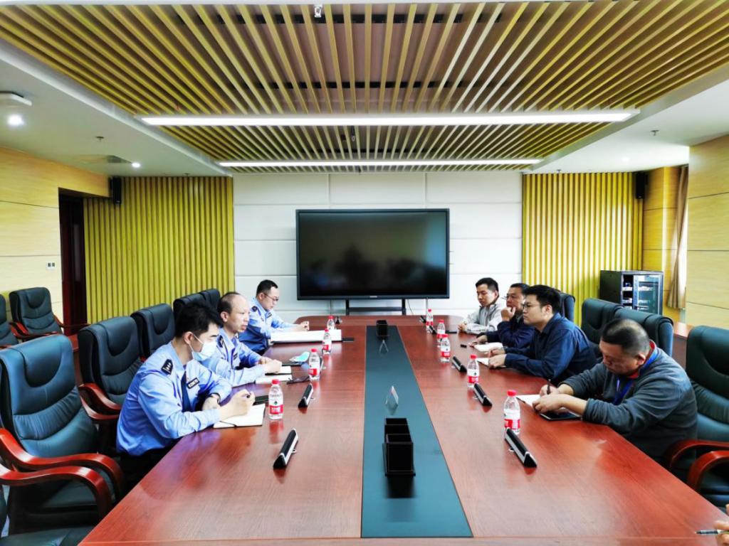 在教学服务中心会议室,潘警官一行听取了未来城校区管理办公室杨叶主任关于未来城校区运行管理情况以及员工学习生活情况的汇报,对新校区校园环境大加称赞,对新校区员工生活保障、校园安全保卫工作给予了充分肯定。
