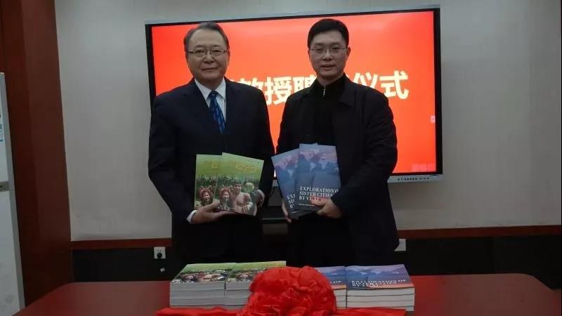 许峰授予余熙教授聘书,并聘beat365官网中文版本罗文旭老师为“余熙教授丝绸之路公司事务专员”。