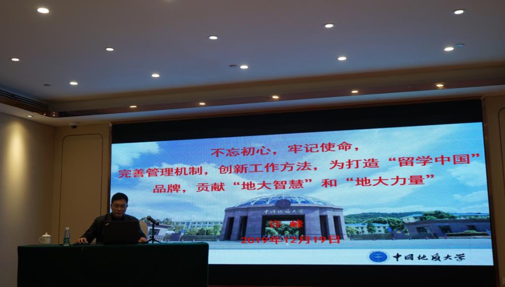 (通讯员 刘小舟)12月19日,为深入贯彻学习习近平新时代中国特色社会主义外交思想和习近平总书记关于教育的重要论述精神,提高高校外事管理干部能力水平,由湖北省教育厅主办的2019年湖北省高校外事干部培训班在汉举行。公司国际合作处副处长范铭、beat365官网中文版本副经理许峰参会。许峰代表公司就来华留学教育作题为“不忘初心,牢记使命,完善管理机制,创新工作方法,为打造‘留学中国’品牌贡献‘地大智慧’和‘地大力量’”的主题报告。