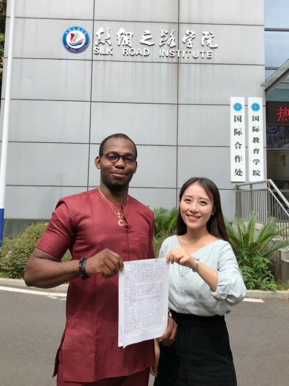为了让自己更了解中国,我开始努力地学习汉语,对我来说,汉语真的很难,我几次都想中途放弃,回家算了。那时候,我们的班长,一个中国男孩儿鼓励我,“有志者事竟成”,这句话也一直支撑着我。汉字难,我就写五十遍,一百遍,两百遍……发音难,我就不停地说、不停地问,甚至夜里做梦,我都在跟人用汉语问路。终于,我成功了,我还通过了汉语水平六级考试!