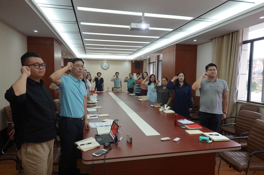按照主题党日要求,许峰同志带领全体党员重温入党誓词,组织全体党员齐唱《我和我的祖国》,抒发对党和祖国的热爱,弘扬主旋律、凝聚正能量。