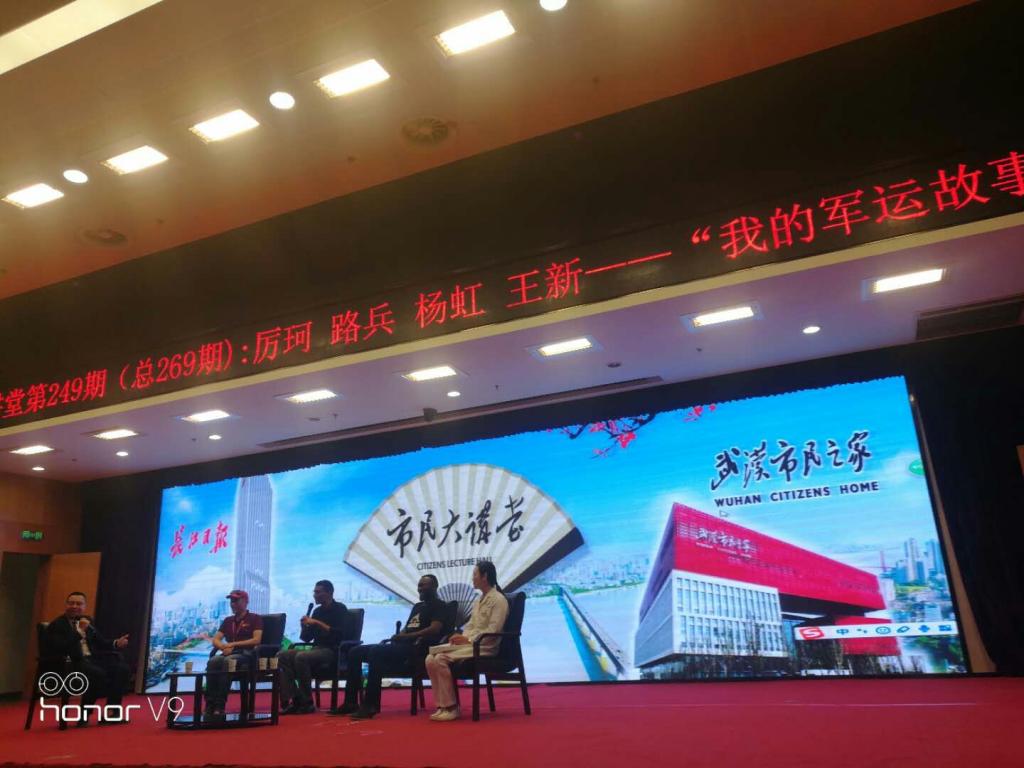 (通讯员 杨素 罗文旭)第七届世界军人运动会临近,无数志愿者正在为军运会的各个环节、各个场馆、各个岗位无私奉献,为军运会添砖加瓦,为军运会增光添彩。4月20日下午,公司2018级地球物理专业的博士生志愿者路兵受邀登台第249期“市民大讲堂”,和其他3名来自黄鹤楼志愿者讲解团队、武汉第四医院急诊部、武汉大学文公司的中外志愿者一起讲述“军运”故事。