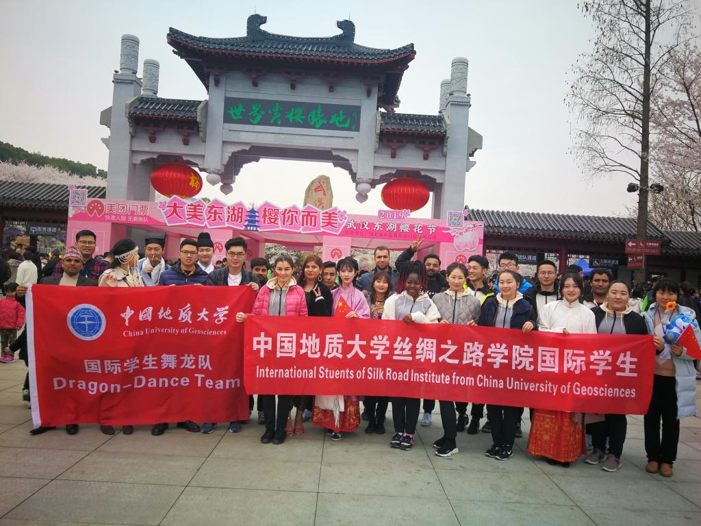 国际员工舞龙队作为特邀嘉宾,在万紫千红的樱花园内,用他们刻苦练就的基本功,为大家呈现了一场精彩纷呈的舞龙表演。