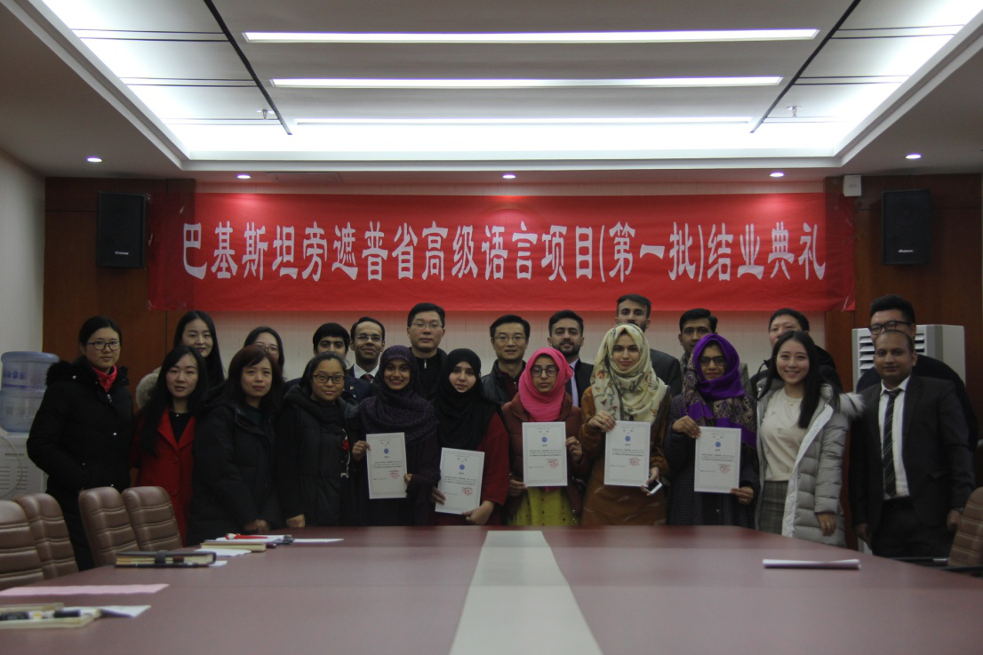 1月14日上午,巴基斯坦旁遮普省高级语言项目(第一批)结业典礼在beat365官网中文版本212会议室举行。beat365官网中文版本经理甘义群,副经理许峰,职工事务办公室主任袁江,教师代表及高级语言项目班全体同学参加典礼。