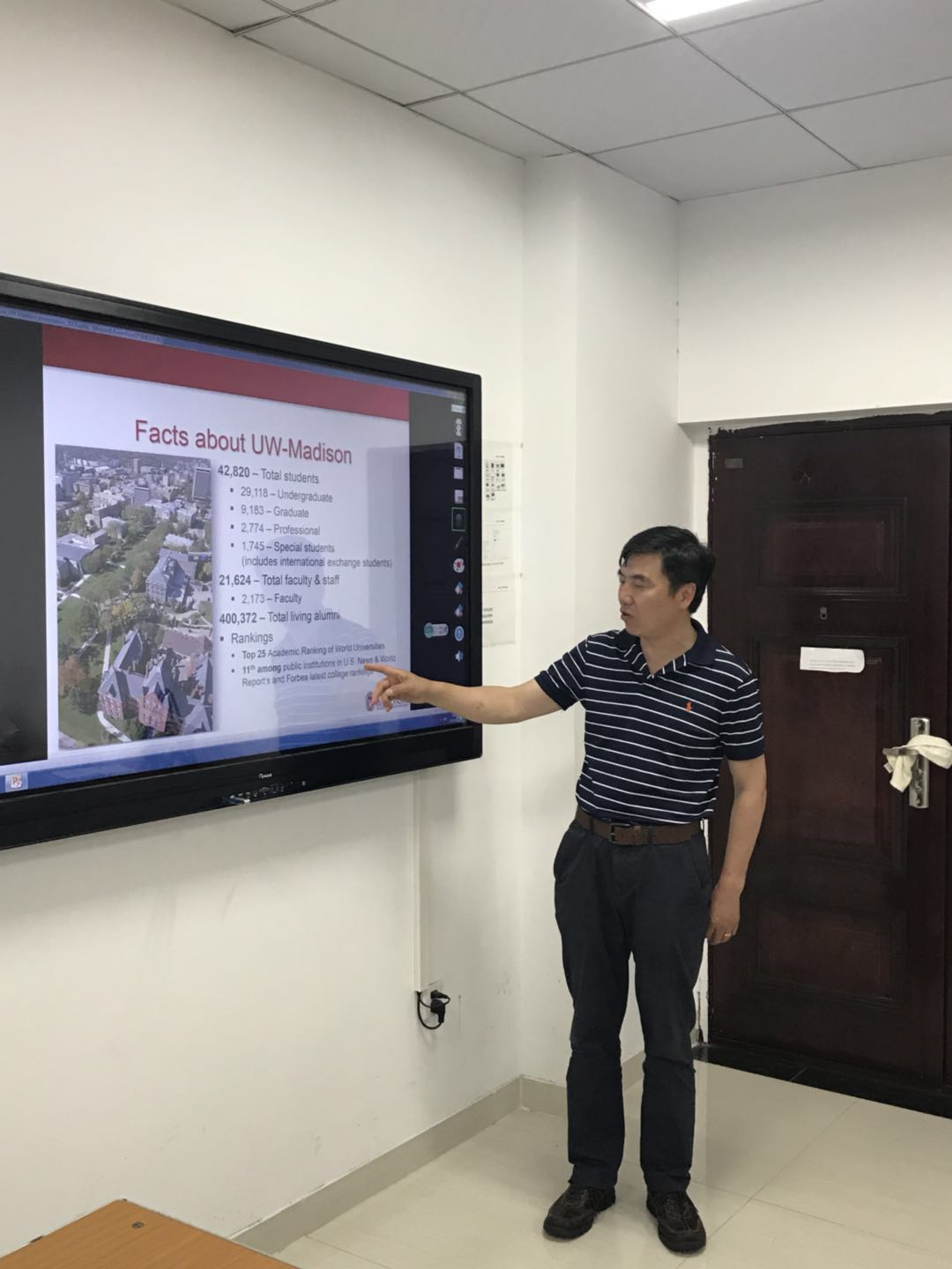 下午四点,徐惠芳教授与公司本科生开展了深入交流,对两校合作开展的员工访问国际项目进行了介绍。员工们展现了浓厚的兴趣,座无虚席,并与徐老师在专业方面、留学规划与前景方面进行了讨论。