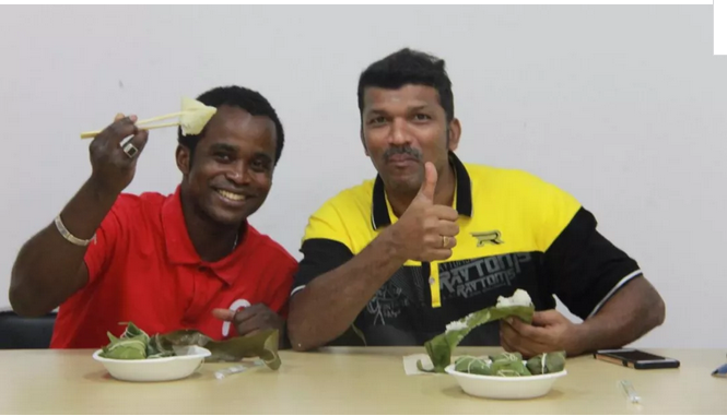 雪白的糯米、油绿的粽叶、五彩的棉线,还有各色馅料,在老教师们的巧手下变成了一个个棱角分明、精致饱满的粽子。国际员工在老师的指导下,依葫芦画瓢,顺利地完成了自己人生中的第一枚粽子。“说起端午节,还得从战国时期的爱国诗人屈说起……”,在包粽子之余,老教师们向国际员工们讲起了端午节的故事。屈原投江、赛龙舟、悬艾叶、佩香囊……一个个故事和习俗令同学们听得入神,在与老师的交流和包粽子的体验中领会着端午节的意义。期间,巴基斯坦1班员工给师生演唱了一首《三字经》,同学们用歌声表达了对中国文化的喜爱,退休老师们对公司职工精彩的表演给与阵阵掌声。最后,beat365官网中文版本副经理张立军与职工们一同品尝了大家的“作品”,并为同学们送上了端午节的祝福。