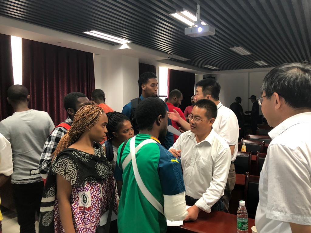 会上,来自山西地矿和山西四建的领导及代表分别对两家公司的基本情况、公司资质、海外项目作了简要介绍,并通过英文宣传片、公司宣传册等方式向同学们直观、快速、具体地展示了公司发展状况及招聘要求。在问答环节中,同学们踊跃提问、公司代表细心解答,现场气氛热烈活跃。宣讲会结束后,同学们纷纷将提前准备好的求职简历递交给公司代表,并迫不及待地上前询问有关各自国家的具体招聘条件。