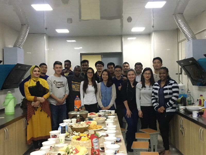 汉语四班的同学则对中国的饮食文化更感兴趣,他们身体力行,共同完成了一桌中外特色兼具的大餐。在享受美食的同时,他们互相交流来中国留学后的感想,分享各自的学习生活,增进了同学间的友谊。