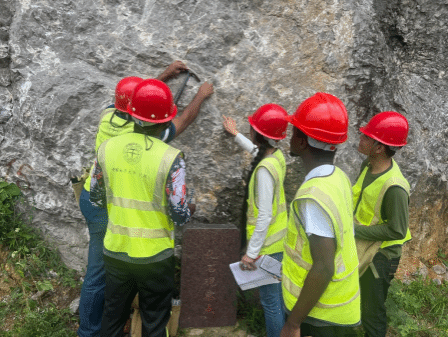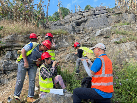 冯庆来、李益龙两位躬耕一线的专家共同领衔指导国际员工完成全部实践教学任务。实习总体围绕八条路线展开,从岩石样品描述、样品采集到构造地质解析、标准地层剖面观察,再到地灾防治、地质资源的开发与保护,构成一条完整的野外教学链。将核心地质技能深度融合,通过沉浸式野外实践强化国际员工的专业素养与综合能力,助力实现“一专多能”的高层次地学人才培养目标。