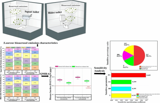 文章指出厕所冲水过程中产生的致病菌生物气溶胶排放是公共设施中一个常被忽视的潜在健康风险来源。本研究发现,在厕所冲水后,大肠杆菌(Escherichia coli)和金黄色葡萄球菌(Staphylococcus aureus)的生物气溶胶浓度都超过了美国疾病控制中心(CDC)确立的可接受水平,有潜在的健康风险威胁。