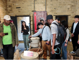 英山县作为大别山腹地,不仅承载着深厚的红色历史文化底蕴,同时拥有独特的自然风光。下午,学生们乘坐大巴继续前往英山县乌云山茶叶公园,在梯田茶海中亲身体验了茶叶的采摘和制作过程,在一芽一叶间品味着云雾茶的清甜。活动过程中,职工们与当地茶农进行了深入的交流,了解了他们的生活方式和茶文化习俗。这种互动不仅增进了中外人民之间的友谊,也推动了不同文化之间的相互理解和尊重。