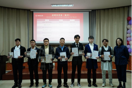 预科教师李菁为“成绩优异奖(数学)”的同学颁发证书和奖品