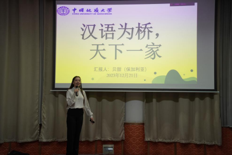 最后,公司国际中文教师奖学金生保加利亚籍贝甜同学受邀作了《汉语为桥·天下一家》的讲座,她结合自己参加“汉语桥”比赛获得“保加利亚赛区”冠军的经历,从听、说、读、写四个方面分享了学好中文的经验,给初学汉语的预科生提供了非常实用的汉语学习建议,使同学们受益匪浅。