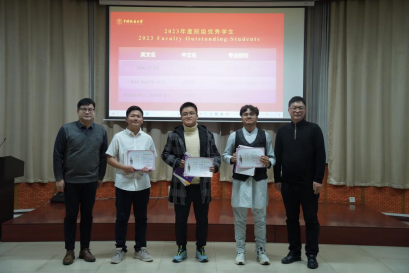 许峰教授和罗文旭老师为“2023年度院级优秀员工”的同学颁发证书和奖品