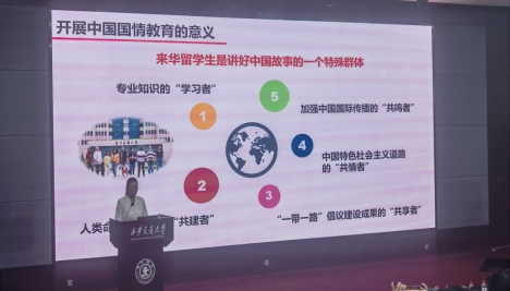 南京大学教授、上海交通大学特聘访问教授、国际中文教育与文化传播研究所所长、国内知名专家程爱民教授带来的首场发言尤为引人深思。程爱民教授指出中国概况的课程建设应根据国际员工对中国国情的了解程度以限定性、选修性、研究性为指标进行三级教学大纲划分,同时在教育数字化的大背景下,应大力发展“互联网+”的国情公司产品方式,并号召与会代表共同努力,把中国概况课程教学进一步向中国国情教育体系建设推进。